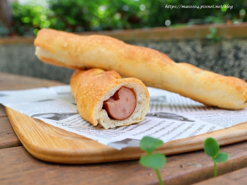 謙謙脆腸麵包外層酥脆,熱狗脆彈