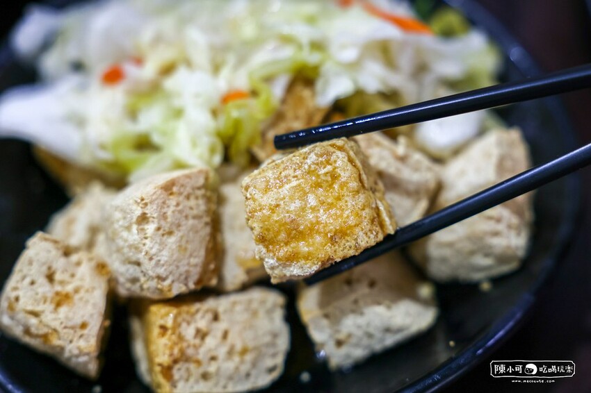 這間的臭豆腐超脆超酥,先將方形臭豆腐炸好,切成小塊再炸,讓四面都能吃到酥脆層次,酥酥香香,一口咬下超脆,這覺得臭豆腐脆脆派的愛,吃的時候要記得小心燙口,孔洞搭配醬汁和酸甜泡菜入口更美味,但我覺得再臭一點就更棒了!哈~這真的好吃,有來這可以點一份嚐鮮。