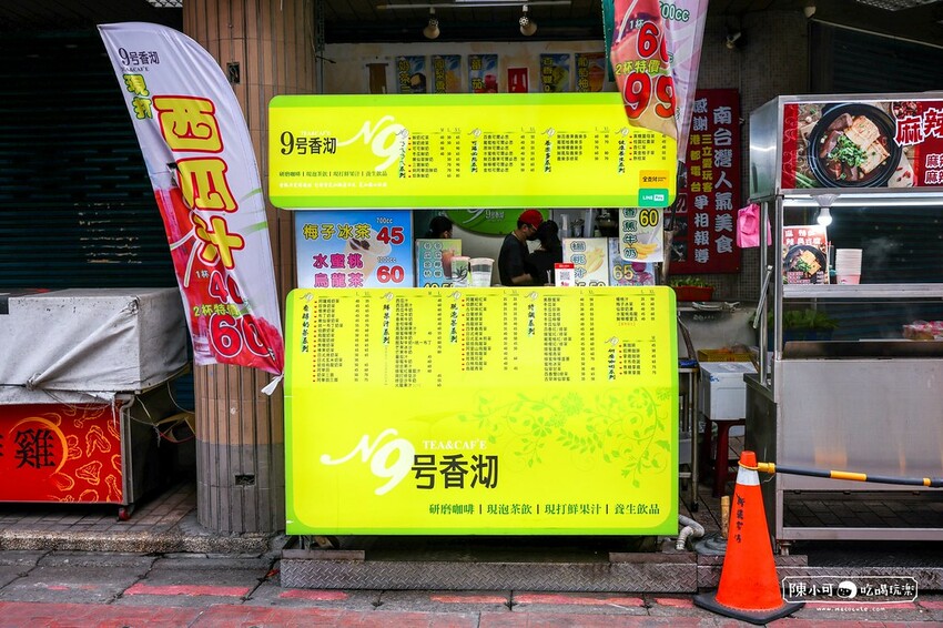 因為天氣熱就沒點湯,想到菜單有果汁和飲料可以點,和朋友就點來品嚐囉!旁邊的攤位“N9號茶沏”,網路上評價還不錯,去點飲料的時候聽到外送機器一直響,生意真不錯。