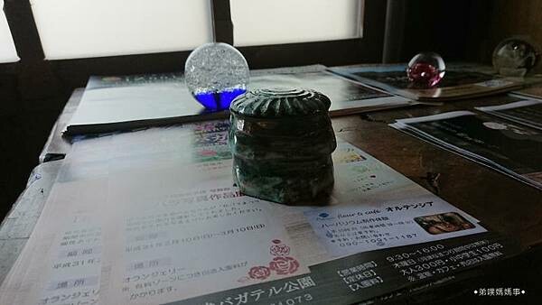 小桌子的簡介紙張,紙鎮也是河童圖案
