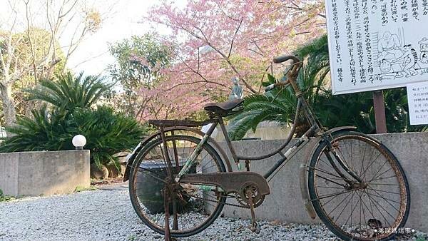 一旁的腳踏車,雖然生鏽舊舊,在櫻花樹下都好有味道