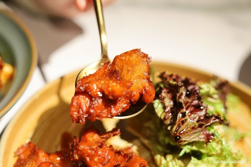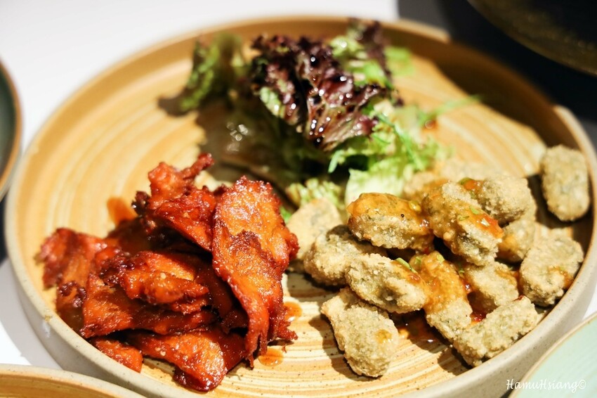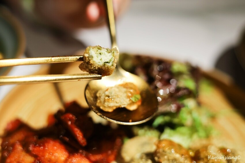 蚵仔酥炸得酥酥的,這道蚵仔酥居然吃起來味道像真的蚵仔!讓人嘴裡留下濃郁的鮮味
