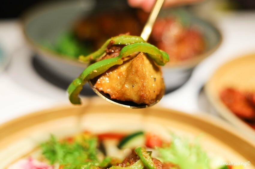 咖哩雞的素肉口感不像一般往常的雞肉風味,但也因此讓人吃起來更有驚喜,完全不像傳統的肉質口感,更有創意和獨特性喔!