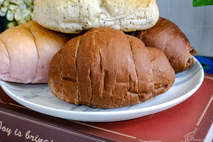 咀嚼時裡面的太妃糖卡士達醬,有著焦糖甜味,揉合了吐司麵粉香氣,配上夏威夷果仁脆脆的口感堅果味,越咀嚼越像牛奶糖香甜,很適合配咖啡或是紅茶當下午茶吃。