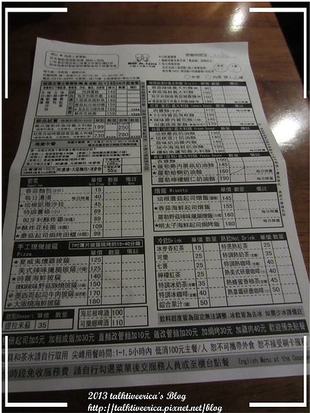 菜單單點與套餐義大利麵、披薩、燉飯與飲品