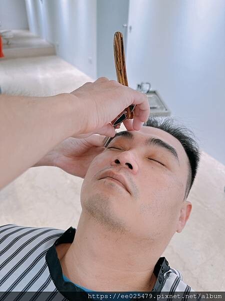 精緻的修整好眉毛和面部的雜毛,屎蛋爸突然變得眉清目秀,一下子出現了帥哥才有的乾淨臉龐~