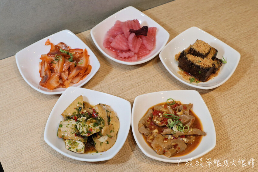 小菜櫃充滿琳瑯滿目的選擇,每天提供九款絕品開胃菜,像是五香豆干、蜜汁花生、韓風泡菜、醋溜木耳、花生米血、涼拌豬耳、櫻花蘿蔔、台式泡菜、三色干絲、翠玉黃瓜、辣拌豬肝、梅漬蘿蔔、百香果青木瓜、柚香豆薯等等,其中一定要點每日限定的隱藏版小菜!小菜部分均一價$45元!光看到這個小菜櫃就讓人口水直流耶><