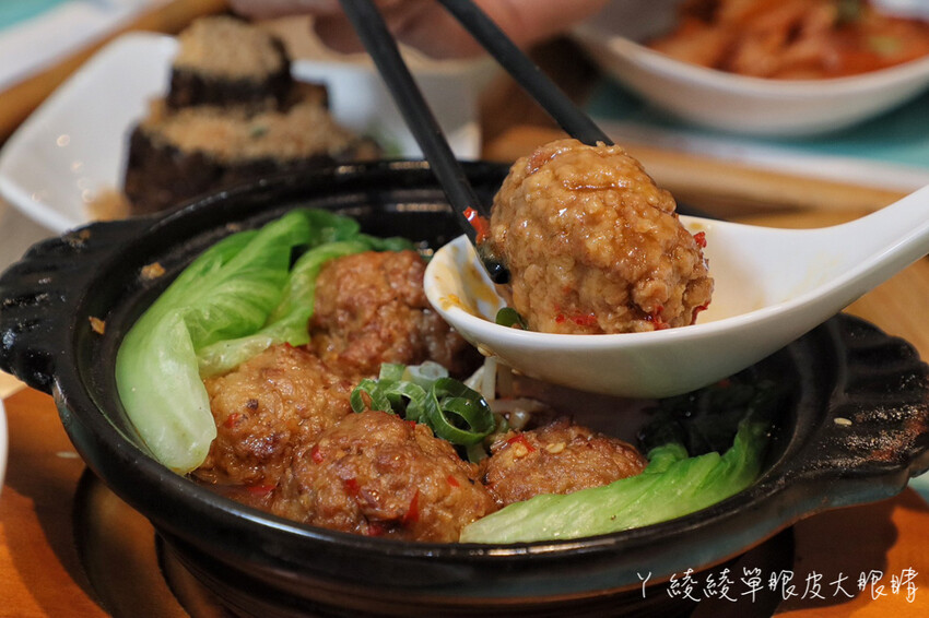 一顆顆圓潤飽滿的獅子頭,吸附蔬菜的鮮甜,肉香混和川辣味,一整個香氣十足!好好吃啊!