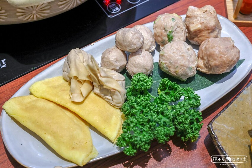 幾乎每桌客人都有點的單點,拼盤有手工芹菜脆丸、手工芋頭貢丸、雲林黃金鵝肉丸、廣東鮮蝦餛飩和手工豬肉蛋餃五種,店員介紹這幾樣都是老闆在傳統市場吃到的手工製作,非常喜歡才會推薦給客人,和雞湯也很搭。