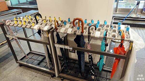 雨具的擺放處,每一個都有鎖,不怕別人拿錯
