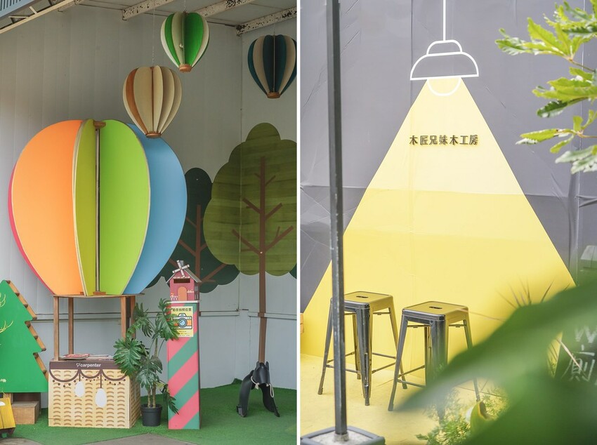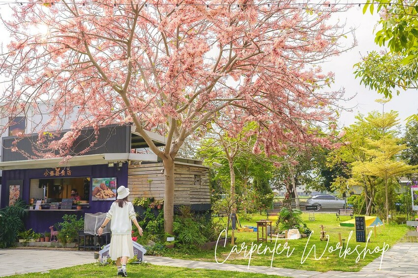木匠兄妹木工房在台中親子景點中頗具名氣,除了質感木作之外,後花園的大草坪更是讓家長及小孩愛不釋手,部分假日還會有市集可以參加,搭配著綠蔭盎然的園藝花圃,四月份前往的話,還可以看到被美稱為泰國櫻花的花旗木,茂密厚實的花朵佈滿整個枝條,空氣中瀰漫著淡淡清香,十分愜意。另外,木工房的後花園木作童玩有許多木作童玩在這裡,可以看到各式各樣的木製童玩供孩子們把玩,比如木馬、木製高蹺、套圈圈等等,每一個木製童玩都是由木匠兄妹木工房的老師親手製作而成,感受到木匠的樂趣,還可以增加手眼協調的能(放)力(電)!