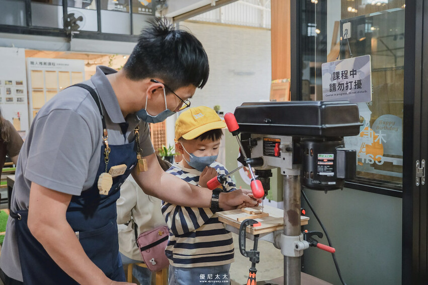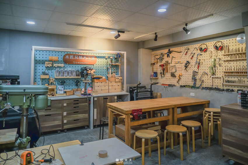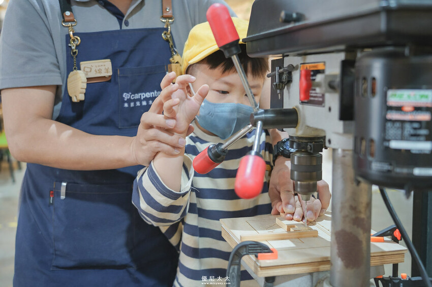 木匠兄妹木工坊的腹地不大,但卻有著小朋友最喜歡的玩沙、木作玩具把玩及DIY體驗,對於還需要放電的小小孩來說,這裡非常適合帶孩子來跑跳,難怪每到假日,園區總是遊客滿滿,其實我自己已經來過好幾次,但這次使用『台中暢遊套票』進而DIY木作體驗,對孩子還說是個特殊的回憶,畢竟,可以在工廠內看到琳瑯滿目的工具,老師也蠻詳細的介紹所有的工具及步驟,寓教於樂。