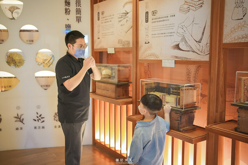 至今超過80年的製麵歷史,「大呷麵本家」是一間結合袖珍模型及傳承製麵技術的一家觀光工廠,雖然免費的展覽館區不大,但完完整整的介紹製麵八道工序,與其他觀光工廠不同的是,這些歷史及技術將透過擬真的袖珍模型完整呈現,甚至連50年代騎著鐵馬上街兜售的畫面都栩栩如生。如今「大呷麵本家」已經搖身一變成為台中知名的伴手禮,店內推出的DIY活動『古法紙捲麵』,將近一小時的活動,化身專業捲麵師,一手沾著食用糨糊,一手握緊麵線,扎扎實實的捲起一束束香氣十足的麵線吧!