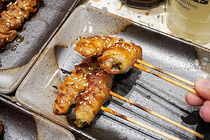 我們點了鰻骨仙貝$118、鰻屋五花豚肉串$118、塩烤地雞蔥串$138、醬燒雞軟骨串$138、五花豬剝皮辣椒捲$138和松坂豚肉串158,