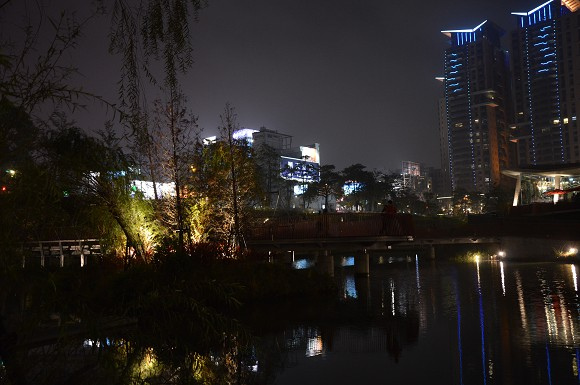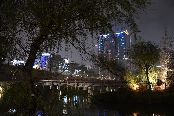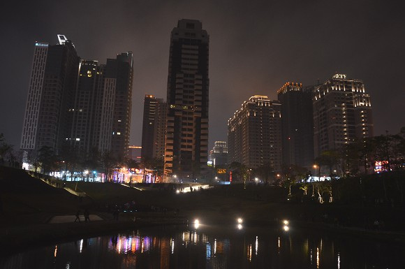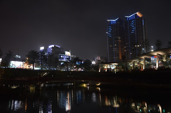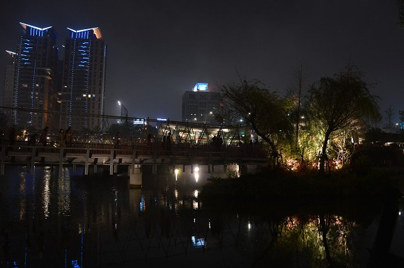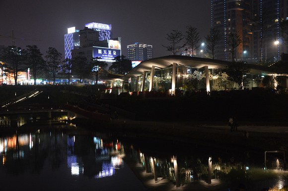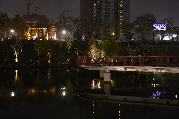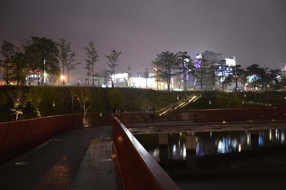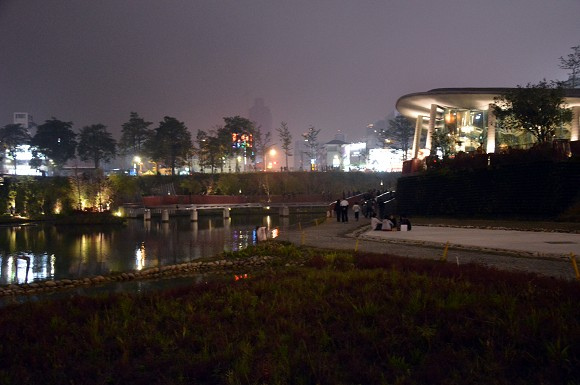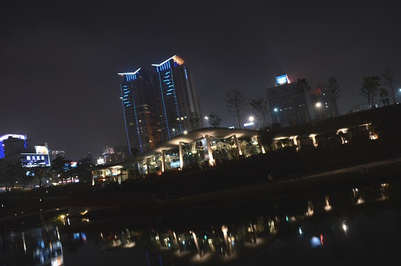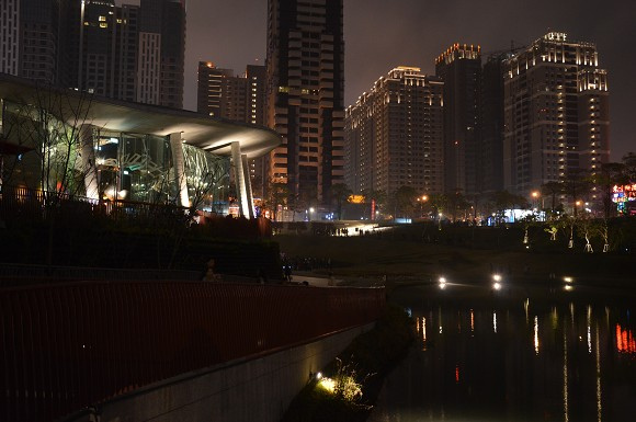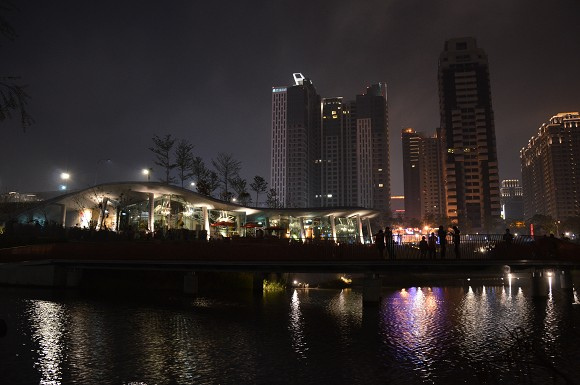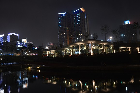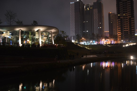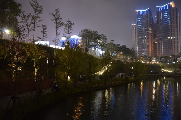 池畔有著充滿時尚現代感的建築物,流線形的設計十分亮眼,夜間燈光映照在湖面的景色令人迷醉。