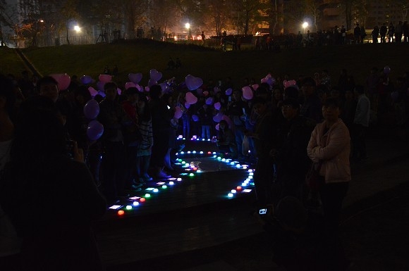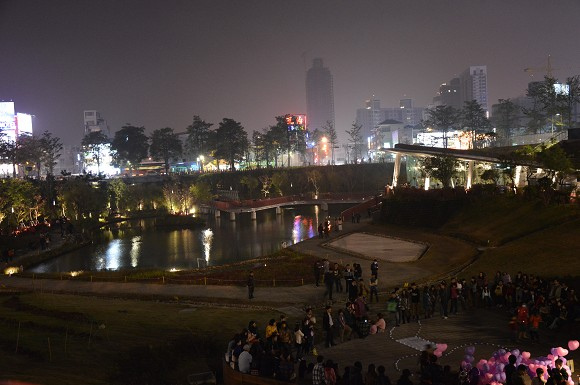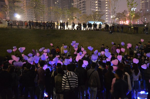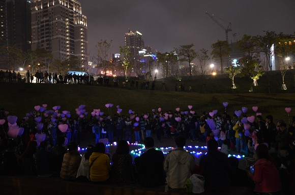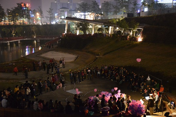 有網友稱這裡是台中市的美麗綠洲,綠意盎然的景觀盡收眼底。當天在廣場聚集了許多人,稍晚會有男主角在此進行求婚的告白,遊客們都滿懷期待。
