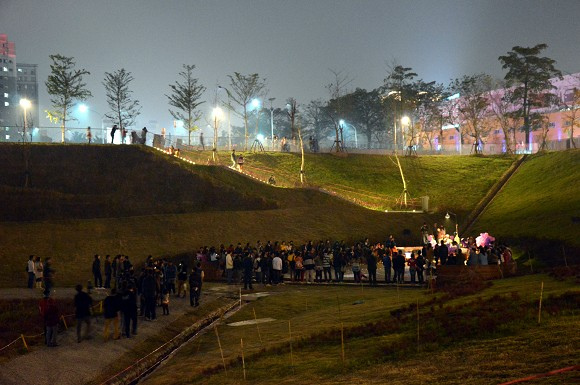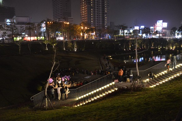 「秋紅谷」真的非常適合來約會散步,夜間璀璨的浪漫夜景,會讓人流連忘返,大家若是有到台中遊玩,不妨來一探都會區裡的奇蹟谷地。