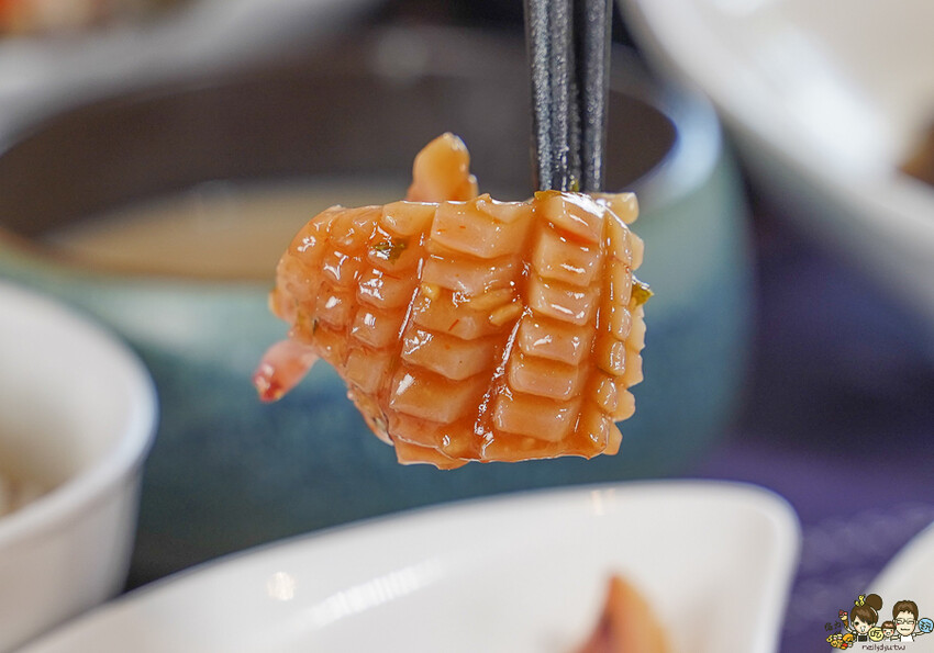 自家調配的五味醬,咬下帶有脆度口感的魷魚很爽口