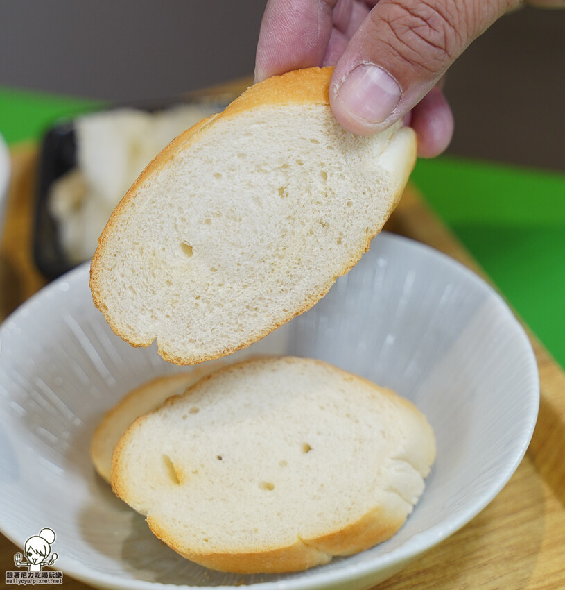 麵食更換成法國麵包,外表帶有酥脆口感