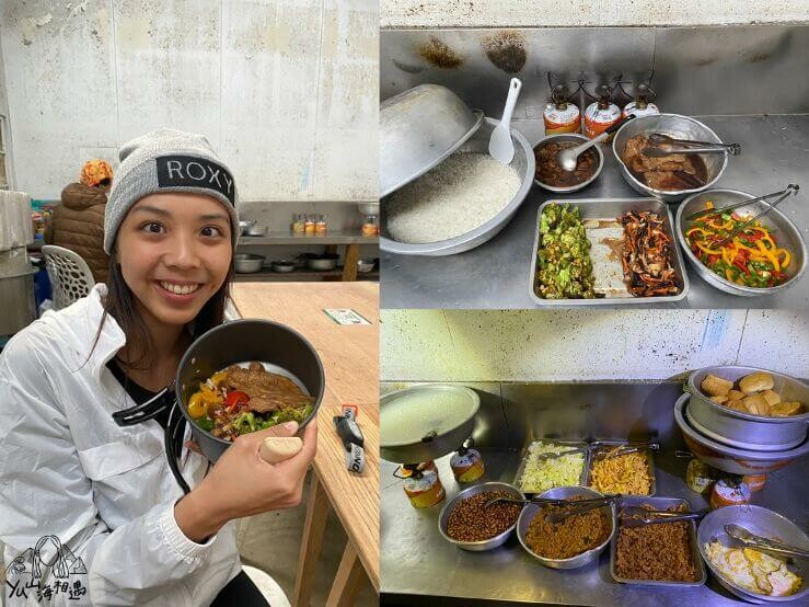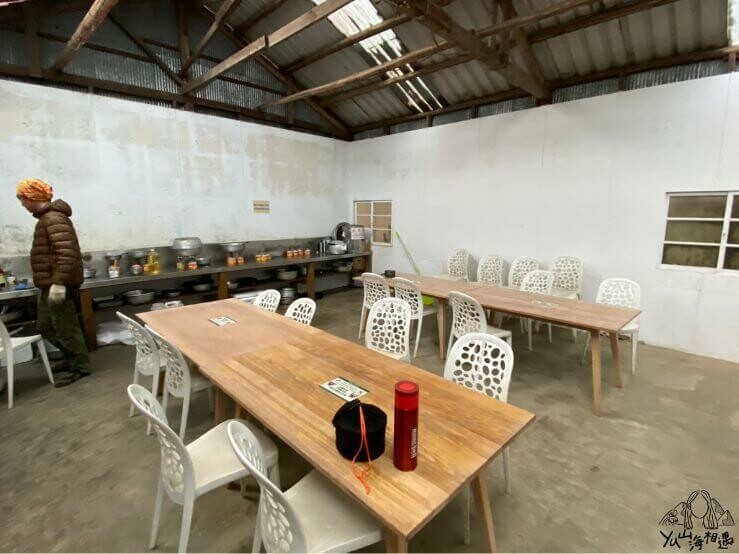 餐廳有炊煮台可以輪流使用,我們這次沒有自己開伙,直接和卡里布農登山隊訂餐,當天晚餐+隔天早餐是600元,也可以多一百塊租睡袋。