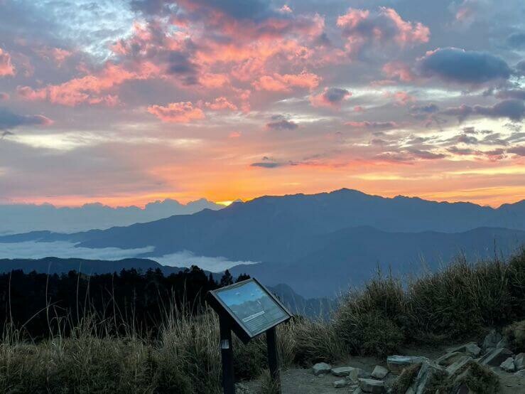 我們這次是凌晨3:30從七卡山莊出發,走了兩個小時到雪山東峰,剛好趕上日出,不過每個人腳程不一樣,新手或許可以多抓一點時間,真的來不及的話,也能在哭坡上觀賞日出美景。