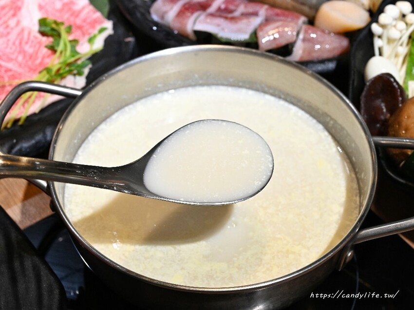 良食煮意有機鍋物的香濃牛奶鍋是使用在地小農鮮奶及乳酪絲額煮而成,旁邊還會附上一隻可愛的牛奶小熊可以自行加入鍋中增添奶香味,良食煮意有機鍋物的牛奶鍋喝起來比較偏清爽風味,不管是煮蔬菜或是海鮮都非常適合呢