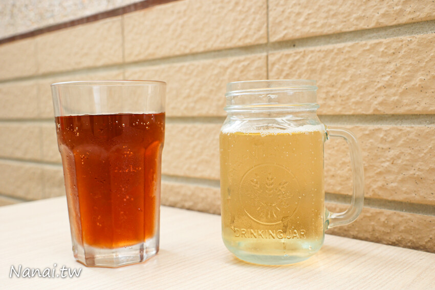 只要選擇主餐均附一杯紅茶,若想喝其他飲品可以半價換購特調飲品,左邊是阿文選的紅茶,紅茶是每天現煮,喝起來有麥香滋味,甜度恰恰好不會太甜膩。右邊則是我半價換購的荔枝風味氣泡飲,基底嚴選天然氣泡水,再搭配非糖漿的果醋調味,無添加糖度,享受爽口沁涼又不會嗆口滋味,口味香甜又輕盈,夏天喝超開胃。