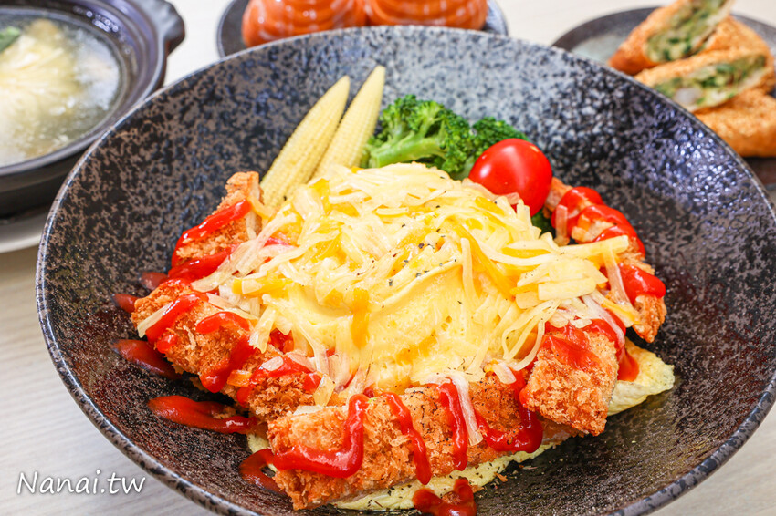 日式豬排螺旋禮服蛋包飯(附甜點、紅茶)、起司+20元