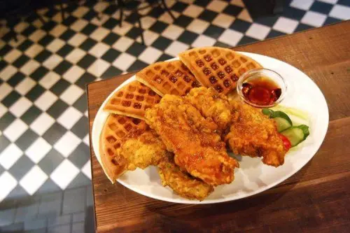 有檸檬的味道,雞翅多汁,旁邊的沾醬,有泰式風味,很適合配酒。