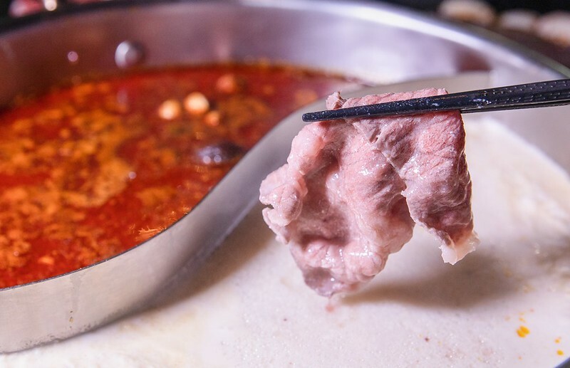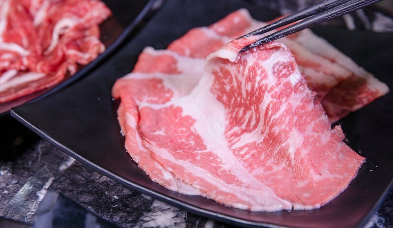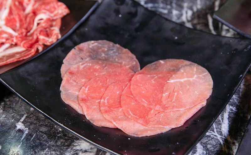 這份應該極黑牛霜降,也是八盤中我最喜歡的,油花很美也很甜,不管涮麻辣還是牛奶都好吃得亂七八糟,比較特別的是涮牛奶鍋會有一種淡淡牛肉奶香的後味很特別。