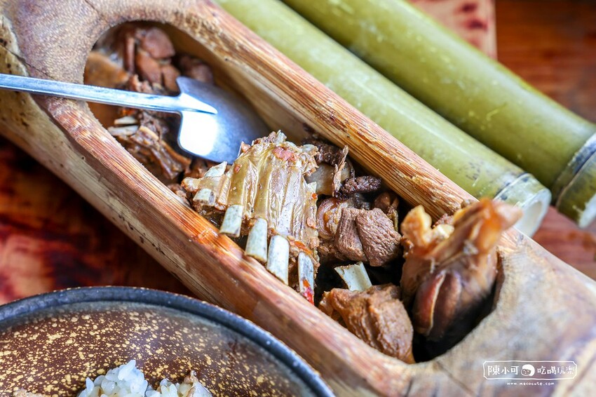 主食有鹽味豬肉飯跟竹筒飯,中間的肉則是山羌肉,雖然以前有看過山羌,但這還是第一次吃到!