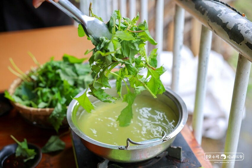 野菜火鍋可以說是這裡的重頭戲,清甜的蔬菜原湯煮滾後,放入各種野菜川燙,再沾上店家特製的油醋醬,酸甜的醬汁化解野菜的苦味,不沾醬吃原味也能迷人,大概是我這台北城市人太愛野菜了吧!光這野菜火鍋就讓我相當滿意,如果可以續用吃到飽就好XD