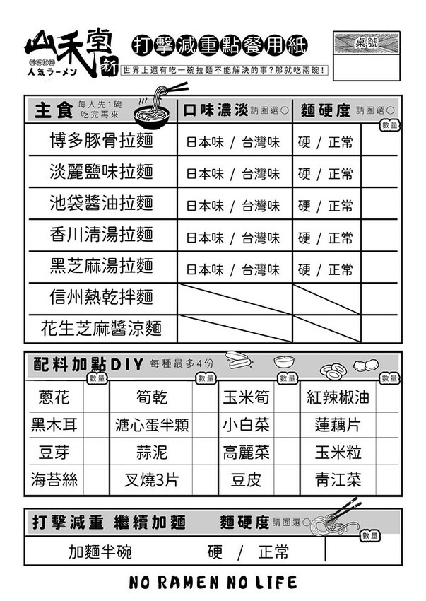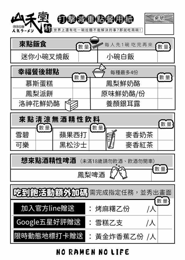 3. 本店所有食材恕無法外帶,浪費食材超過300克每人額外加收100元食材費。