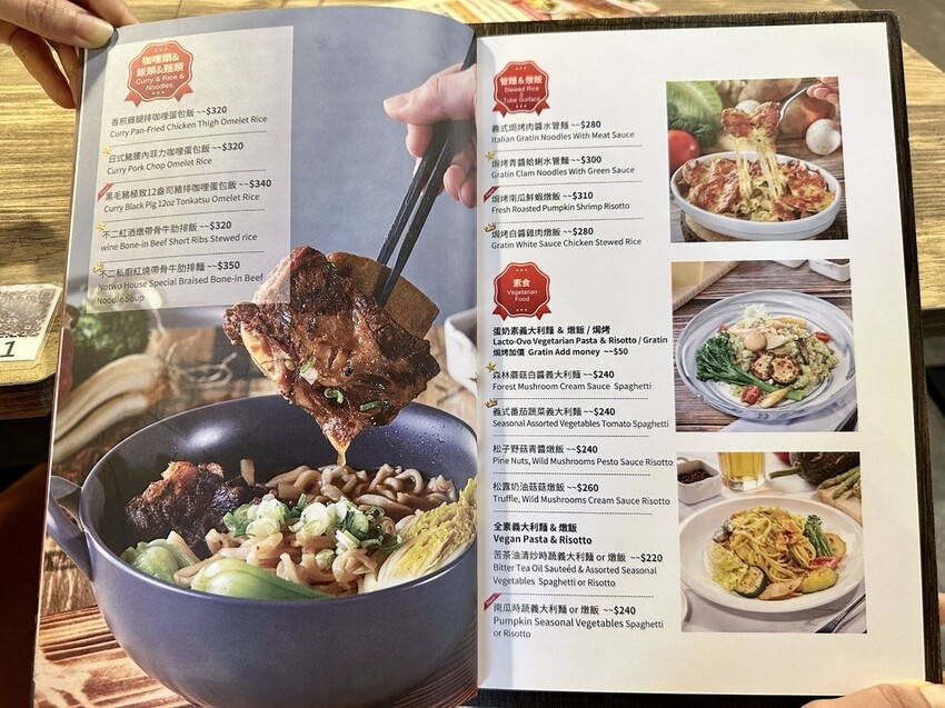 提供沙拉、輕食、義大利麵、燉飯、咖哩…等,