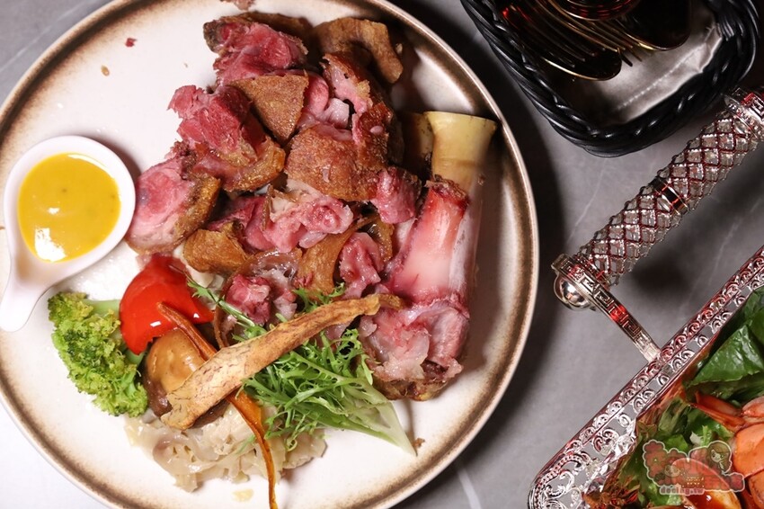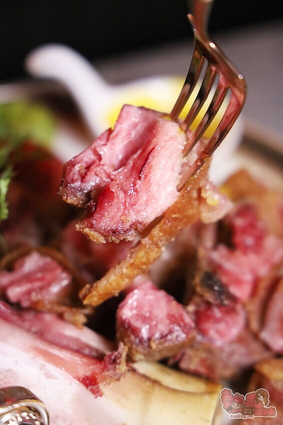 嫩煎牛小排搭配上紅酒黑蒜醬,牛小排吃起來嫩口,單吃剛剛好,再搭配上醬料則很開胃,也很適合搭配酒一起吃。