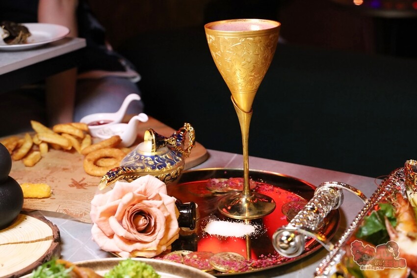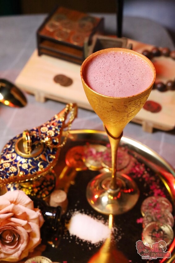 你看看銀色高腳杯搭配上神燈,有一種彷彿即將實現願望的象徵,唯美的酒色是葡萄香氣,伏特加酒底,喝起來甜甜香香的,讓人忍不住多喝幾口呢~