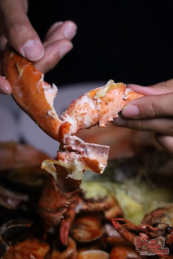 幾乎每桌都必點的龍蝦海鮮拼盤真的很狂,一整尾的波士頓龍蝦就這樣上桌,一旁還有花枝、九孔、蝦子、蛤仔,最下面還有大量生菜,吃起來超鮮的!