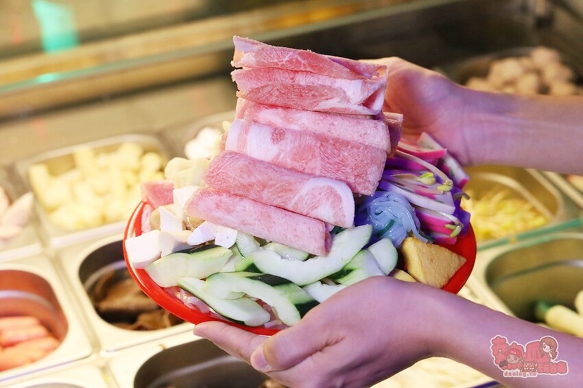 偷偷告訴你,夾菜秘訣,可以先將肉至放在盤下,其他比較大的食材再放放夾高起來,就可以像心愛a這樣夾滿滿喔~