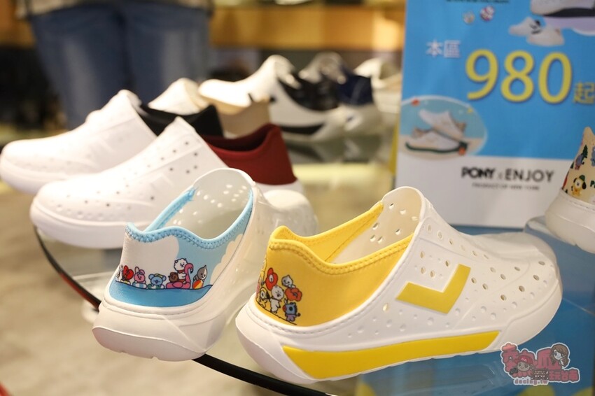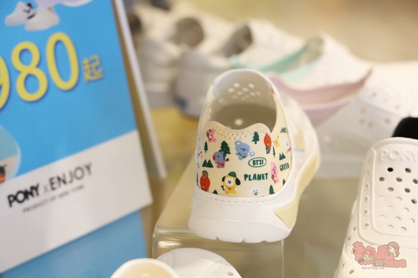 色系單一的白色鞋款好好看,而且防水又透氣真的太適合夏天,另外我們還有看到與BT21合作的聯名限量款,設計的可愛又好看,穿起來不但潮又有面子呢!