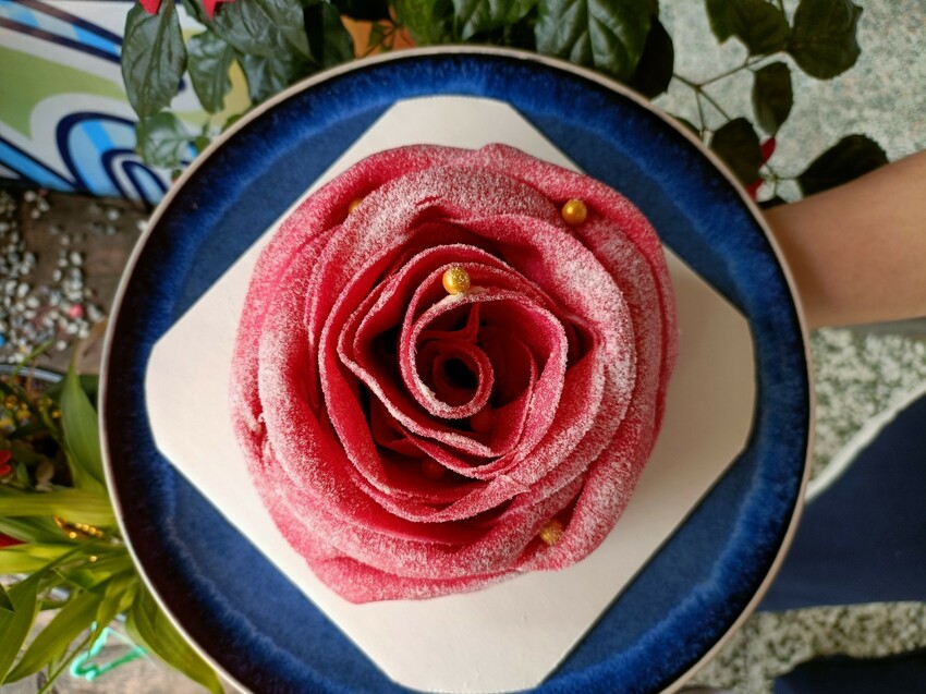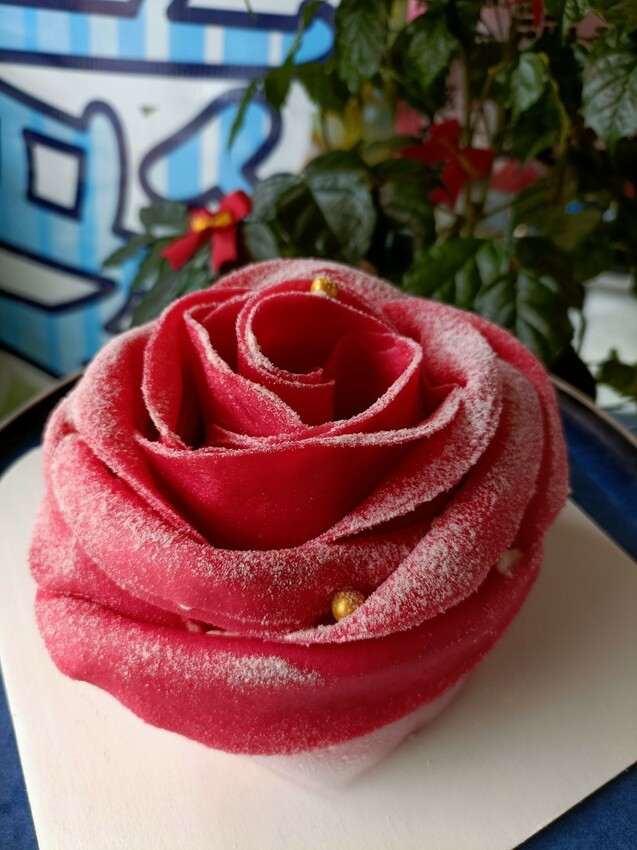 這個真的是就是純手工了,板娘說他做一顆玫瑰千層