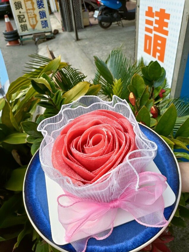 像這一款紅色原味,那個花瓣外皮是用仙人掌果粉下去染色