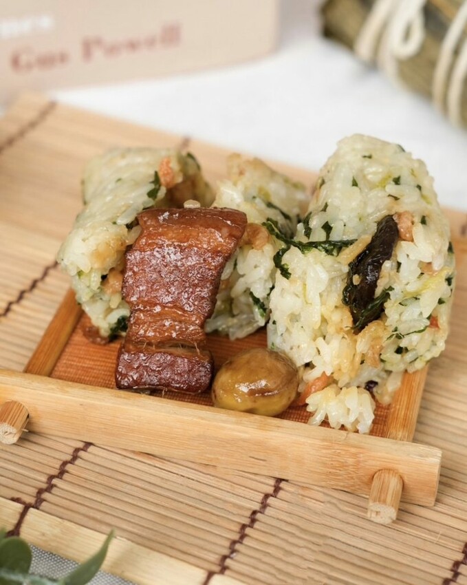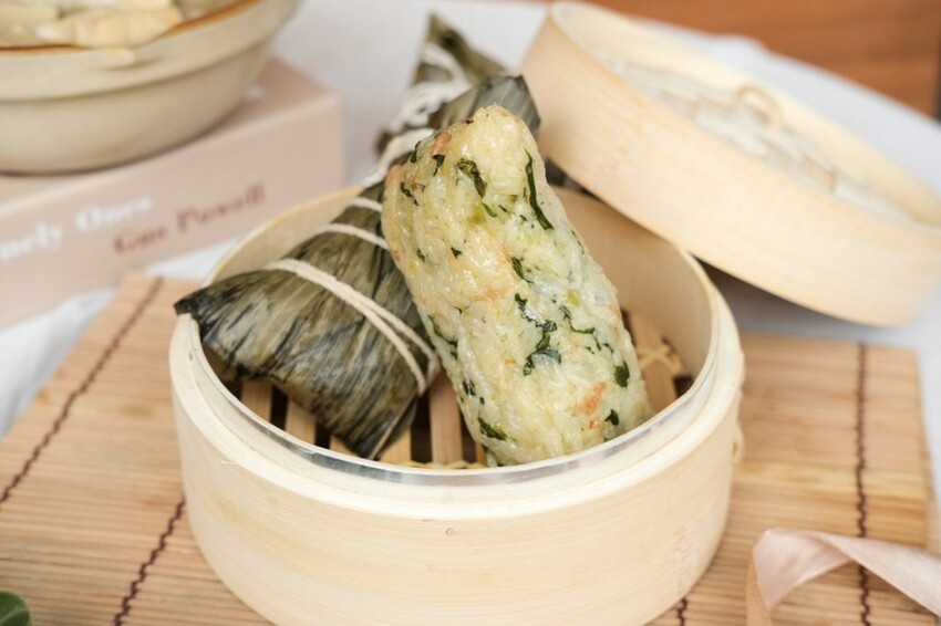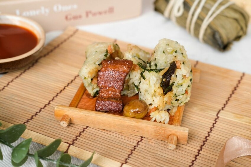 ▼將國宴名菜創意變化的無錫燒肉粽,採用肥瘦適中的台灣本土豬肉,以秘傳無錫醬汁熬煮五小時以上,豐腴的油脂化進米飯裡,吃起來醬香味十足,一口咬下菜飯的鹹香和封肉的軟嫩,在嘴裡打造出豐富的口感盛宴。