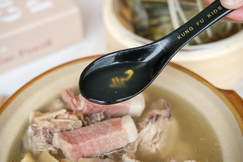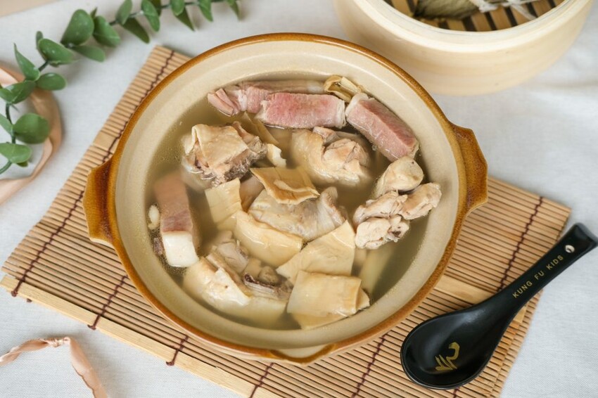 ▼溫潤順口的火腿扁尖燉雞湯雞湯,採用傳統的老祖宗煲湯工法,用土雞大骨熬煮18小時成濃白湯色,湯頭厚實甘甜,不會有過分的油膩感。