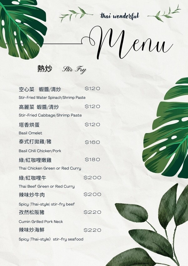 泰美好Thai Wonderful菜單~飯、麵食系列