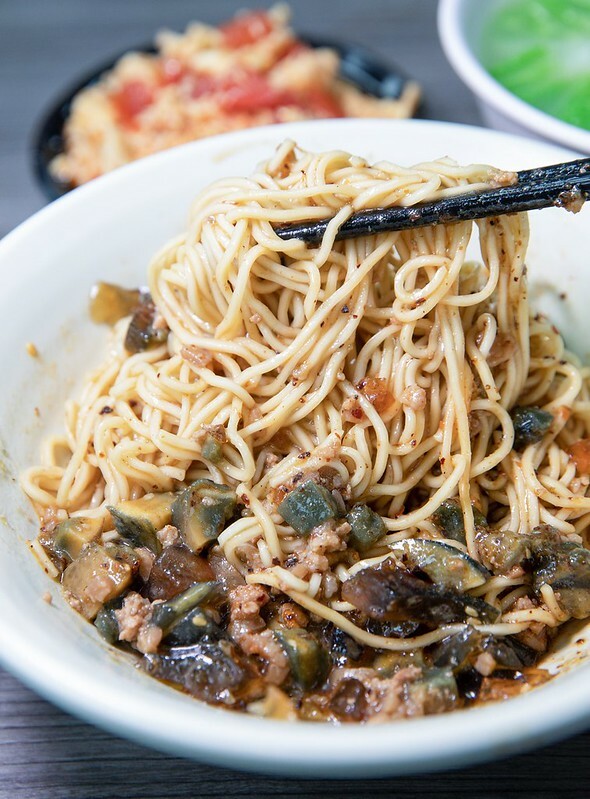 拌開後發現除了肉燥和皮蛋後,底下還有一些像是四川、重慶般的微辣紅油,都還沒吃就越聞聞饞直吞口水。麵條是我偏好的細直麵,煮得極好微帶咬勁,麵香在偏重的肉燥、紅油、皮蛋夾擊下還是能清楚的嚐到,這也是我喜歡這碗麵的關鍵之一,另外我猜裡面可能有加了一點點糖,讓肉燥的鹹、紅油的香及皮蛋神妙的滋味,整個纏在一起,一口接一口完全停不下來..相信喜歡皮蛋的朋友都會喜歡才對。真是好吃得亂七八糟。另外,我偏好這一碗的原因是不會過鹹,即便有一點點微油,但是我喜歡的那種油香。