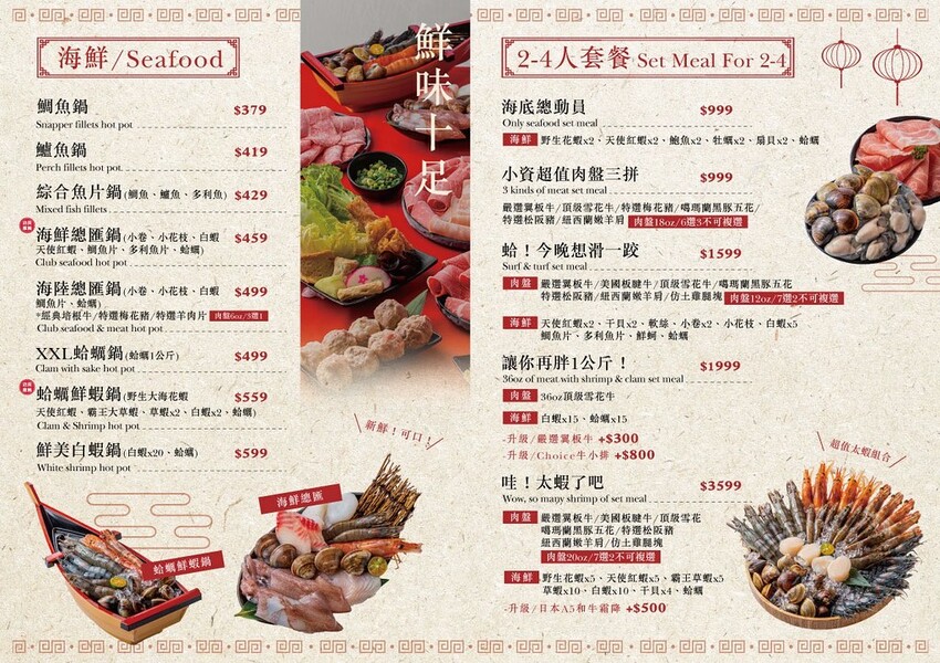 三重少見的火鍋店裝潢,在視覺上非常吸睛,紅色是喜慶的象徵色彩,製造出一種熱情、歡樂的氣氛。此外,木質座位也是中國風的常見元素,營造出一種溫暖的用餐氛圍感覺。