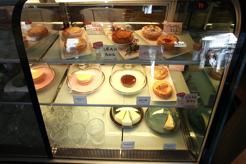 冷藏冰箱裡面放置各種鹹派和甜點供選擇,甜點部分需要來這裡直接選擇享用。