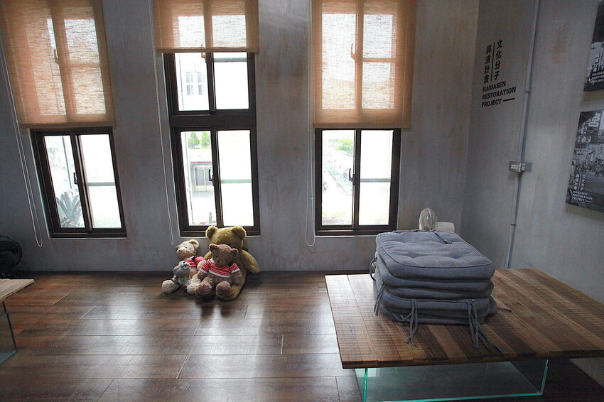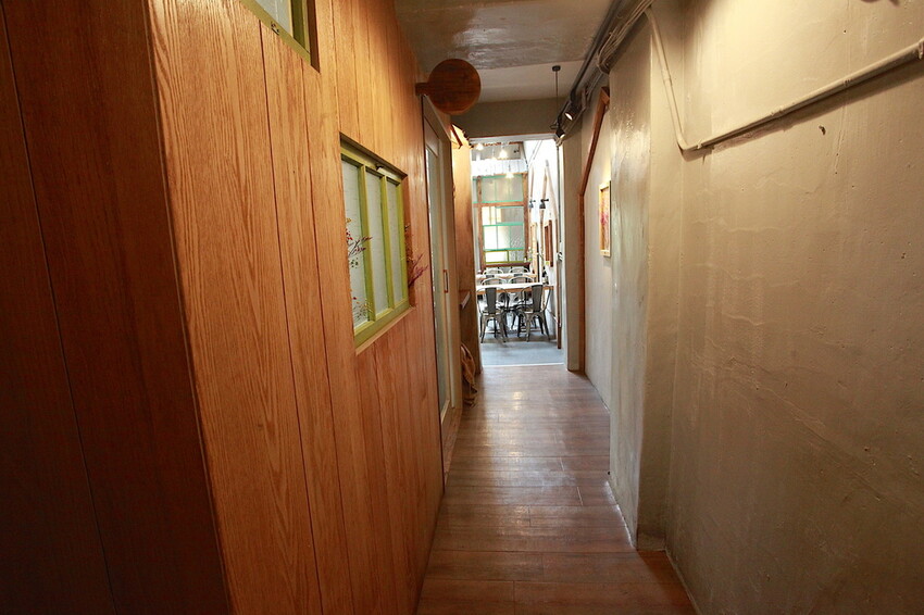 木門推進來裡面採用溫潤木質來裝潢,厚重鐵片來做地板與老舊木窗,讓整體呈現復古溫潤工業風氛圍。