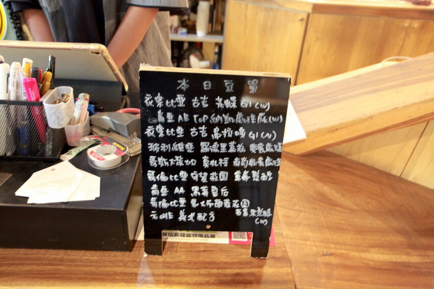 牆面櫃子裡有放置咖啡豆供客人選購,小高覺得店家咖啡豆定價是很親民。