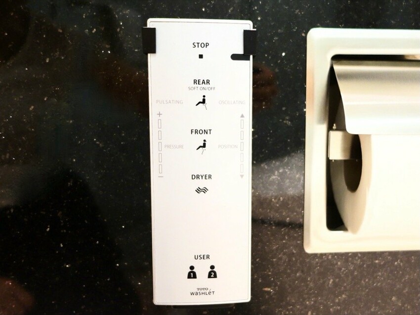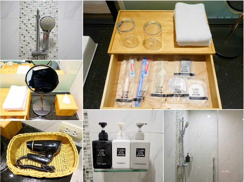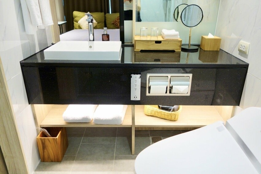 ▼ 曼谷索拉利亞西鐵飯店的廁所沒有那種一看就很美、很驚艷的外型,但是設備非常齊全:化妝鏡與方便洗臉卸妝取用的衛生紙、簡單盥洗備品、國際牌1800吹風機,以及按鈕自動開關蓋的TOTO免治馬桶。廁所裡面非常乾爽,使用起來很舒適!